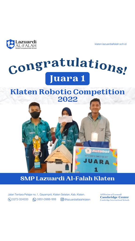 SMP Lazuardi Al-Falah Klaten Menjuarai Peringkat 1 Dalam Perlombaan Robotik di Klaten